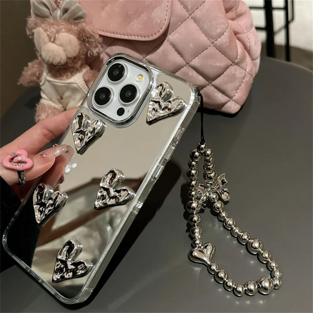 3D Love Heart Mirror Bracelet Case for iPhone